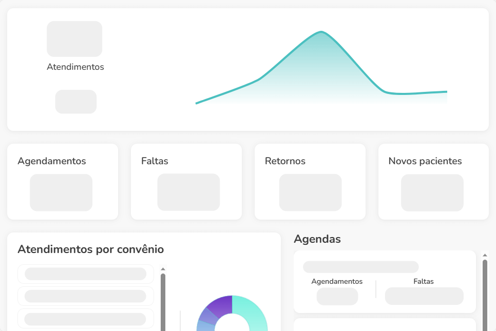 O Zaex Clinic proporciona uma visão ampla e instantânea das principais métricas da sua clínica. Acompanhe o número de atendimentos, agendamentos, faltas, convênios etc.