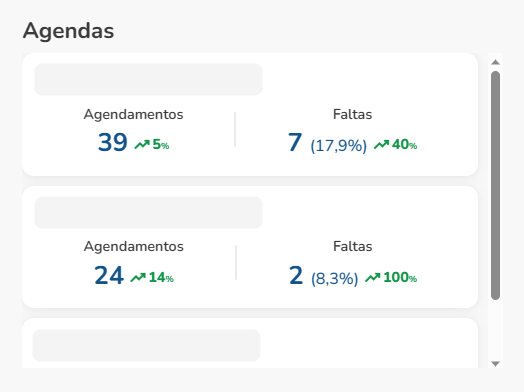 Para toda métrica também é exibido a sua comparação com o período anterior, fornecendo uma indicação relevante da tendência de desempenho da clínica.